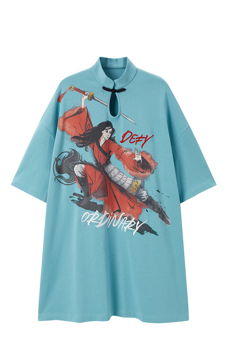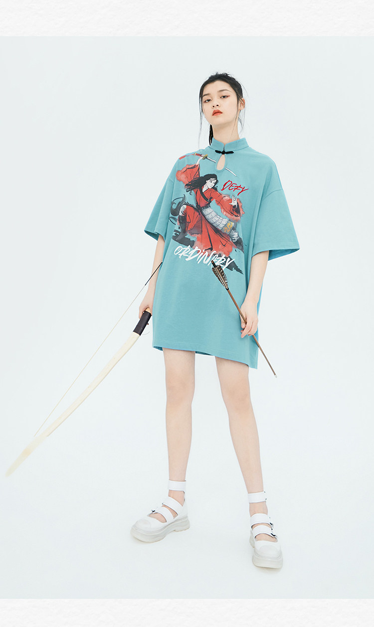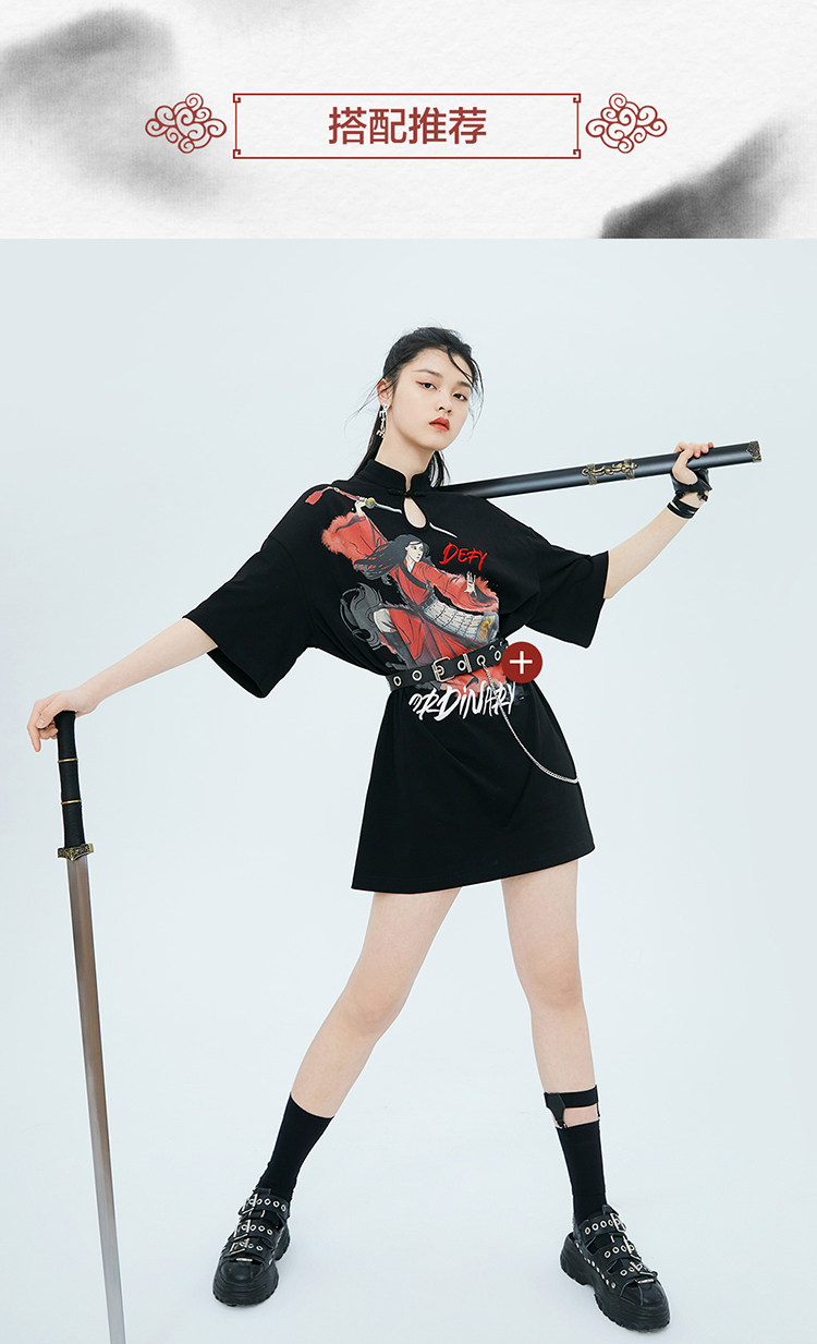 • [Disney Mulan Joint Name] Peacebird Embroidery Black Dress Women's Plate Button Cheongsam 2020 Summer New