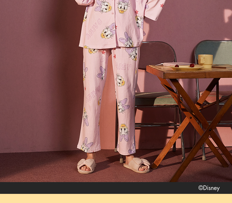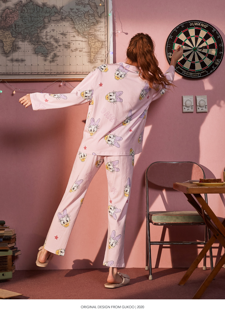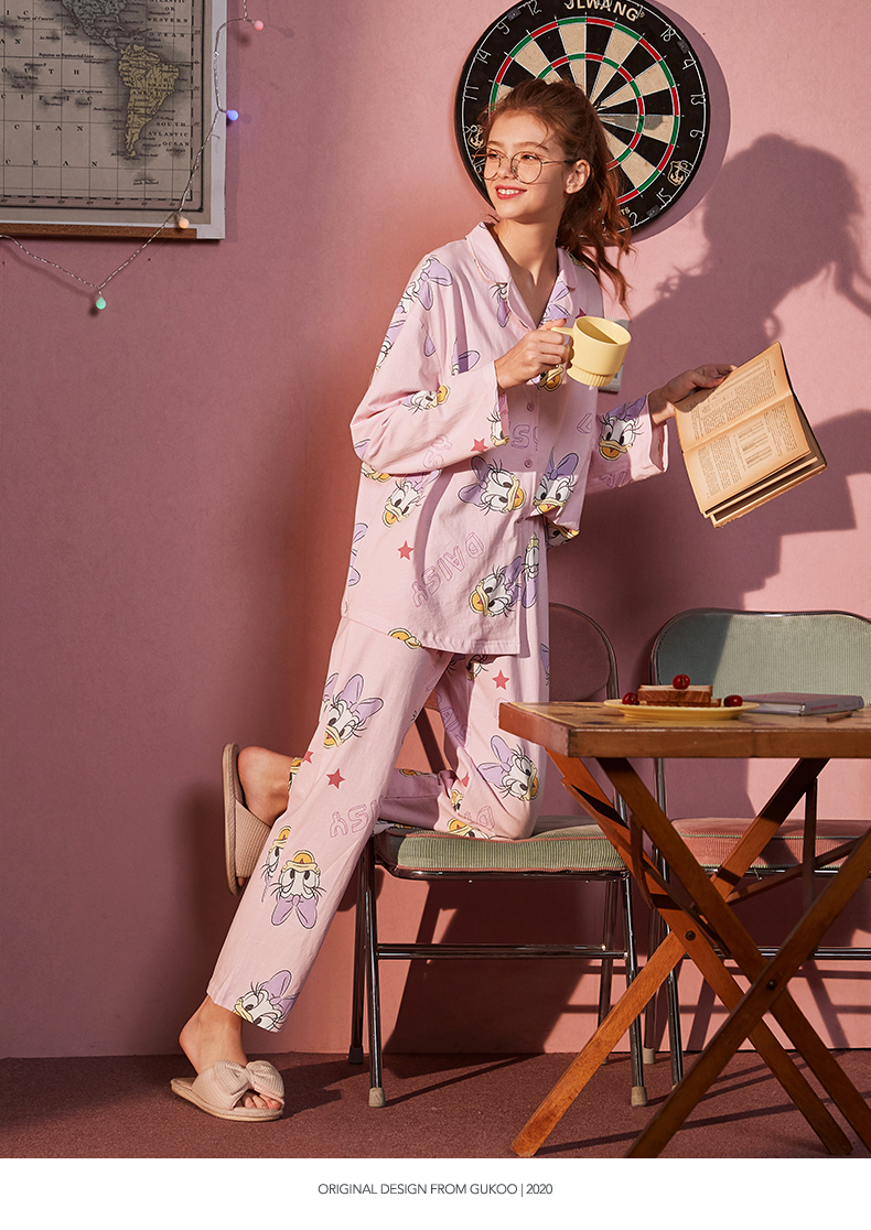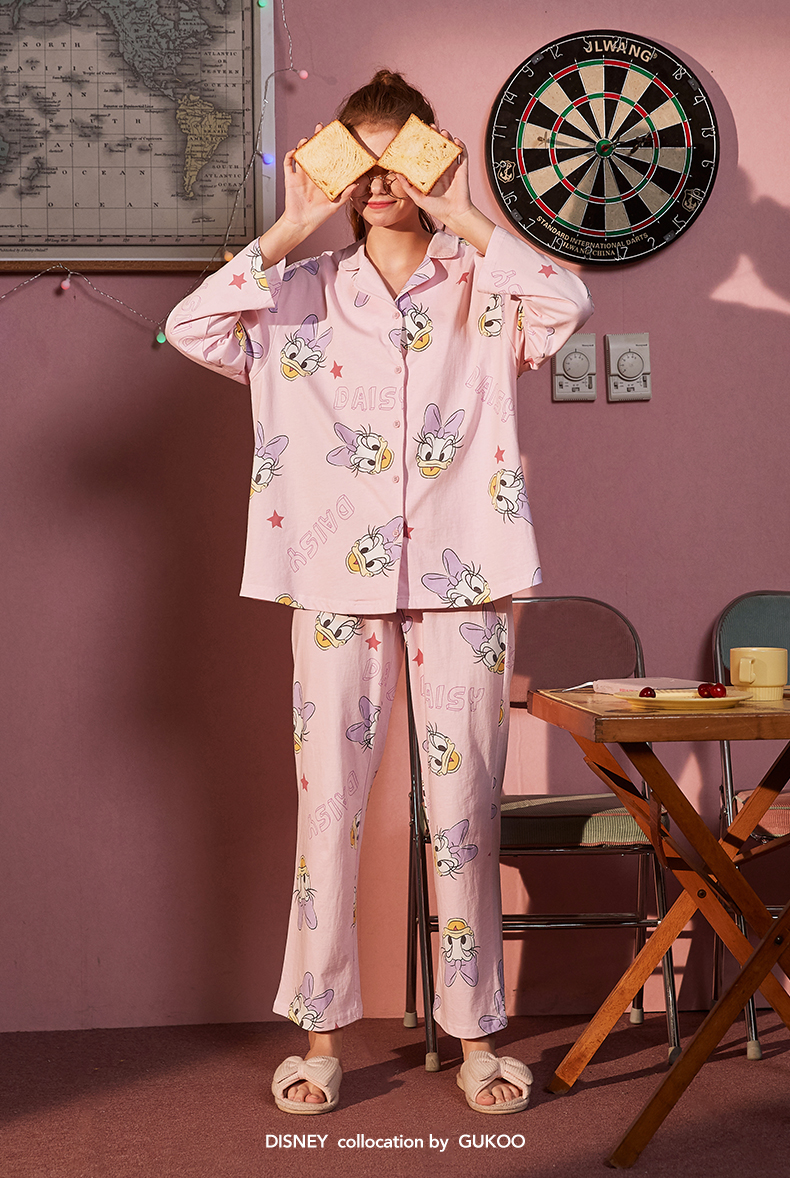 • Gukoo/fruit shell disney pajamas female spring and autumn ladies full print pajamas set cartoon can wear home clothes