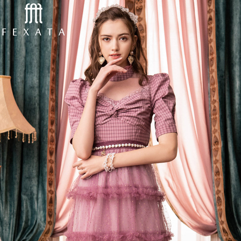 "Shopping mall with" FEXATA shirt women's 2021 autumn new collar retro check sweet short coat