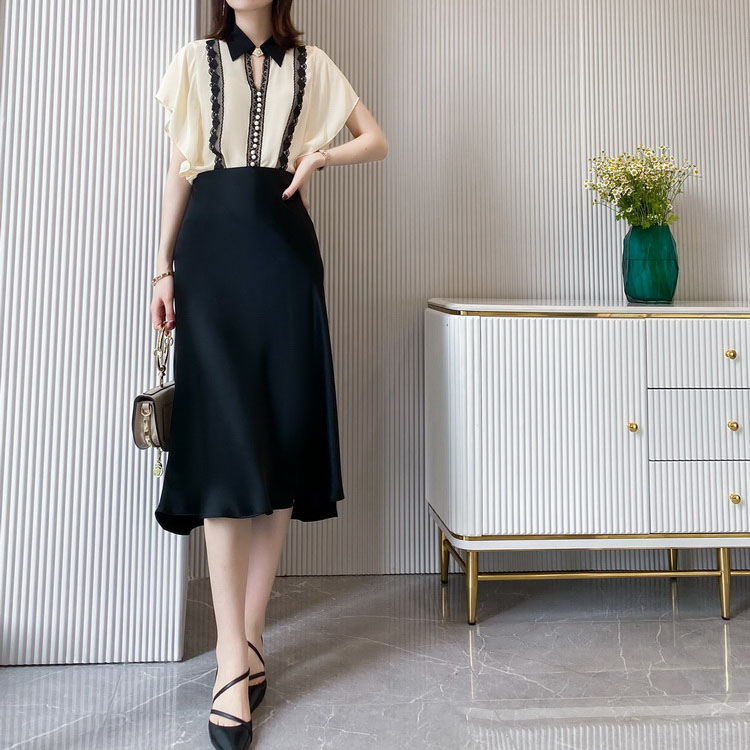 Women High Waisted Skirt Silk Satin Skirts A- Line Elegant S